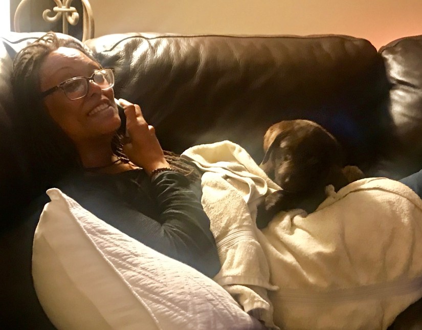 Luckily and I had Tierney and MJ (the female humans) hostage in the basement den binge watching television shows and eating snacks while paying attention to me: