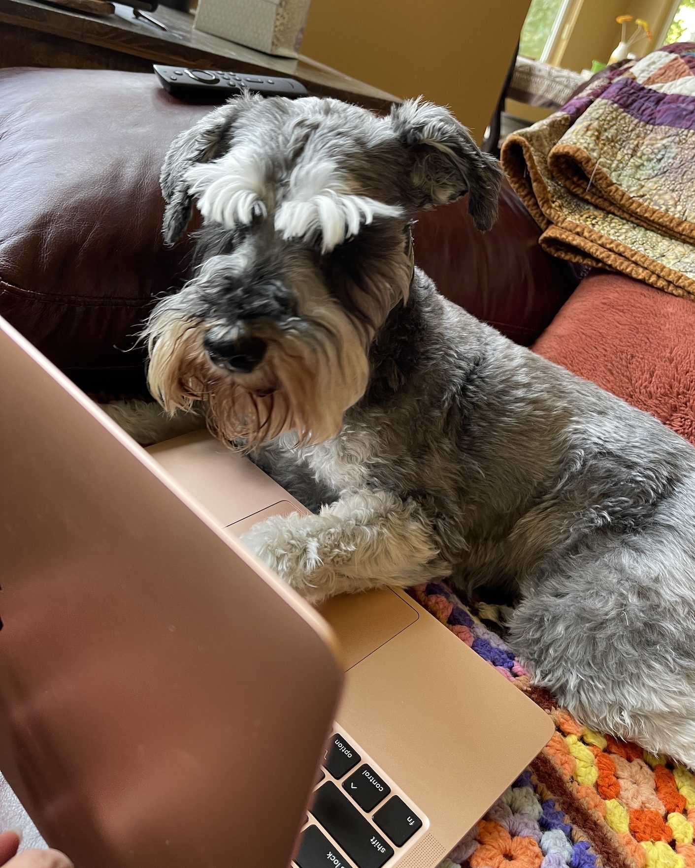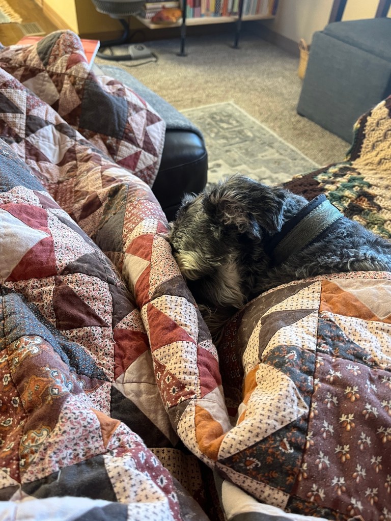 This is Mike, the Miniature Schnauzer that lives with Tierney and John. If you are new to this blog I guest blog post time to time. It’s January 31st and Tierney has not posted on her blog since January 15th (ScrapHappy January 2024 – Update on Table Runner and More ) and I needed to intervene and jump on her laptop and write a post (even though I don’t have opposable thumbs so typing is challenging).
