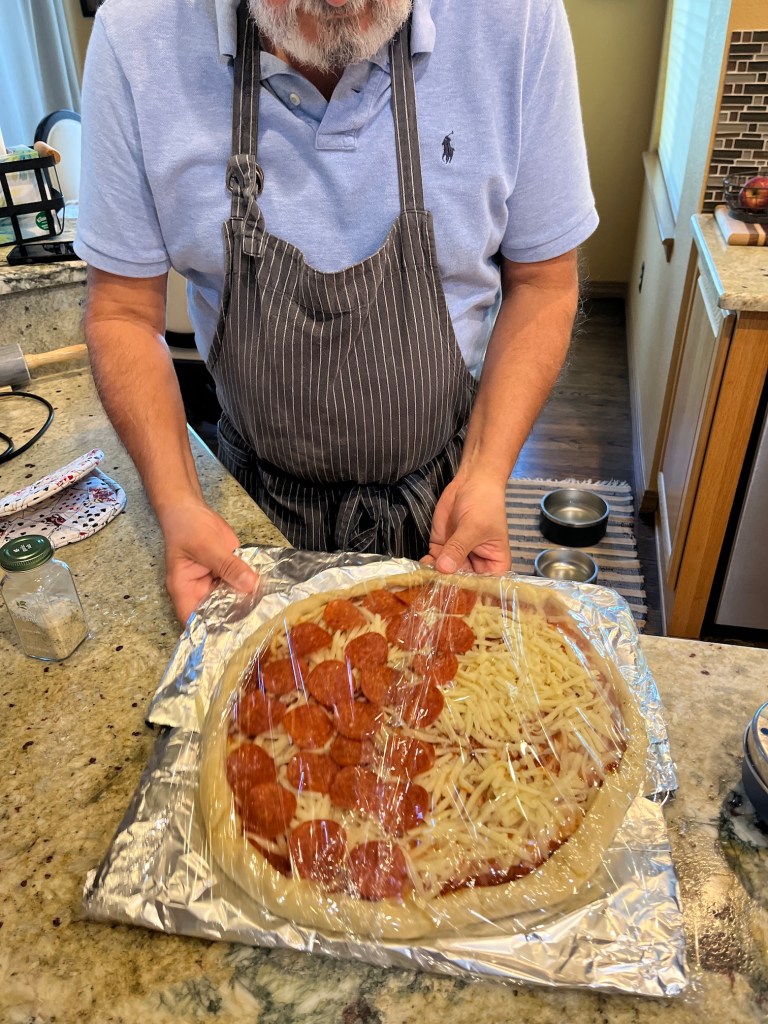 John always makes a pizza for my Grandpa (John’s Dad who I visit all the time) who lives nearby; and my human brother (John’s son) and his family, whenever he makes pizza. It’s like he supplies pizza to 1/2 the neighborhood!