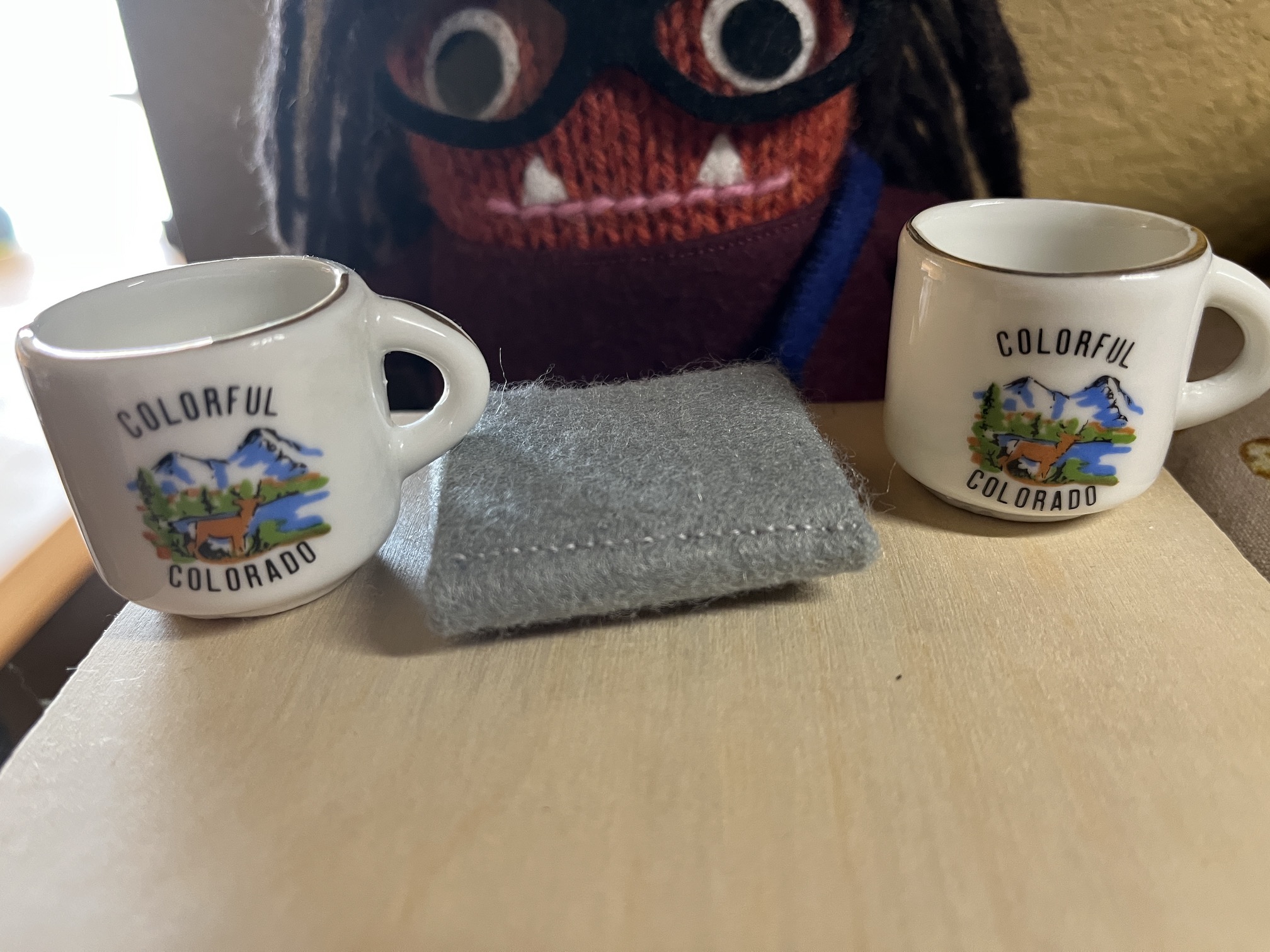 Tierney thought I should store my colored pencils like she keeps hers – upright in containers for easy access, so she just now put mine for me in a little Colorado mug!