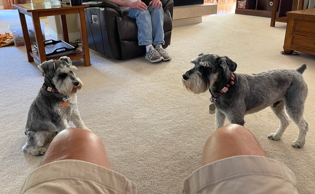 In my Dog Camp post, I shared my challenges of being EXTREMELY popular at the Dog Camp I attend whenever my humans go out of town (though occasionally I stay with John’s Dad who refers to me as “his dog” even though he now has a miniature schnauzer puppy living with him).