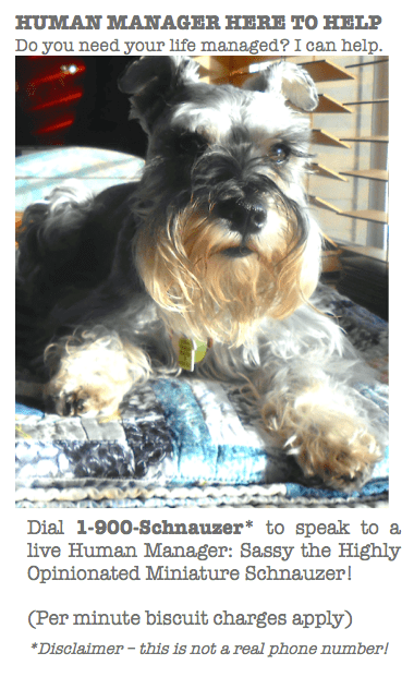 This is Mike the Miniature Schnauzer who lives with Tierney and John, who despite not having opposable thumbs is able to write a guest blog post from time to time.
