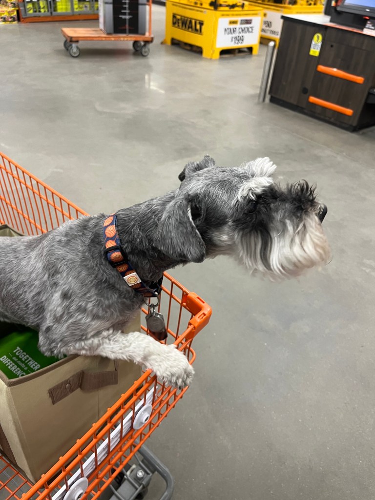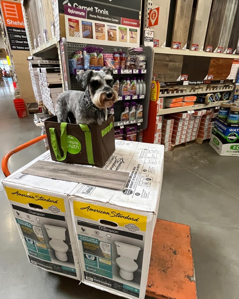 Tierney and MJ helped out the male humans John and J by running some errands including a trip to Home Depot for something called “shims”. Of course Tierney and MJ took me with them and I had to help them find the shims: