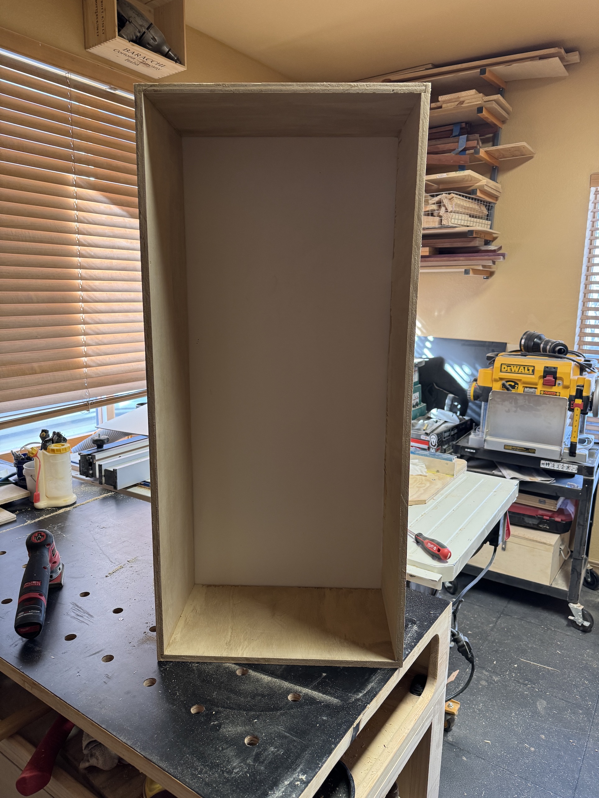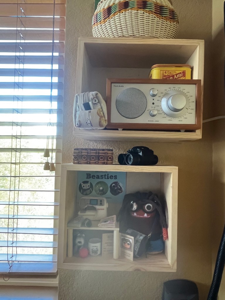 Here are my previous accommodations in Tierney’s studio (in a box John made during his earlier days of woodworking):
