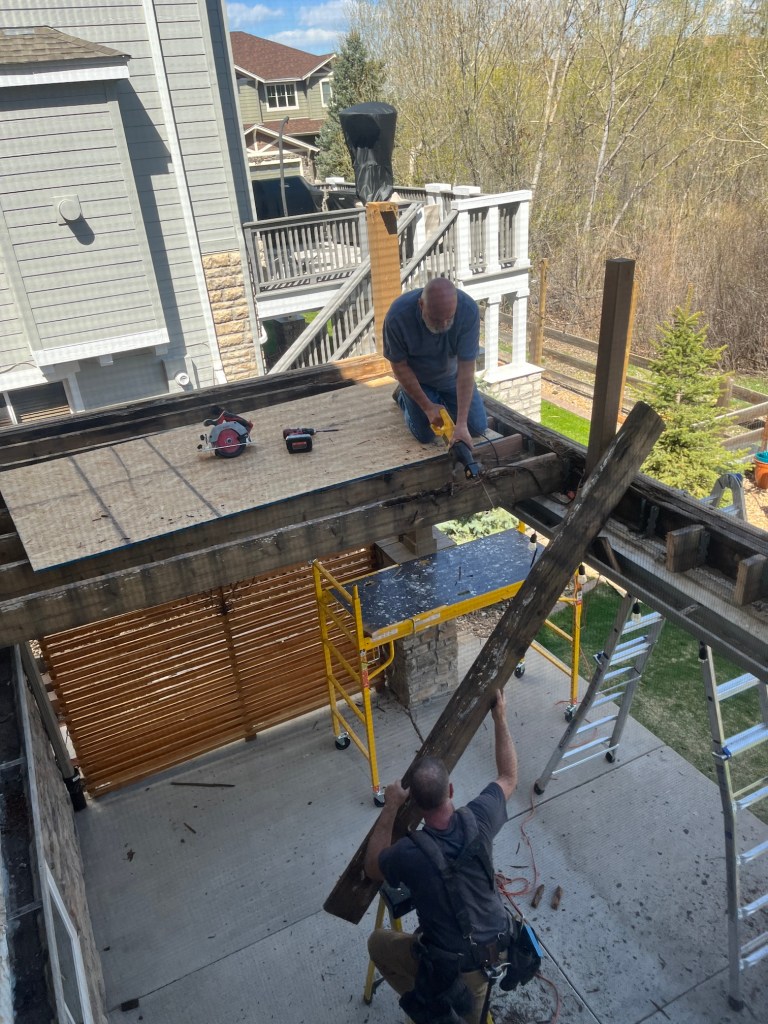 Tierney and John had an upstairs deck that was on the verge of collapse. John had tried bracing some of the rotting sections a couple years ago but they were one crazy human-deck-dinner-party (you know if the humans started jumping up and down on top of the deck while dining) from a total deck disaster!