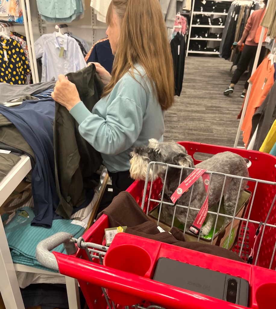 We also took a trip to Target to buy J some additional clothes as he had “Man-packed” where he forgot to pack all the clothes he needed for the trip. Little did MJ and Tierney realize that there was a “Service Dogs Only” sign in the entry of the store (oops!)