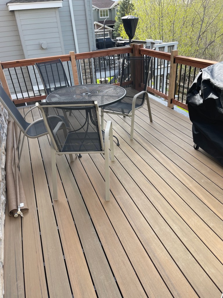The deck is not completely done. John has to order something called “matching trim” for the deck, add post caps (whatever those are), and do some painting. But the deck is now very usable! The humans could even have a crazy human-deck-dinner-party if they wanted.