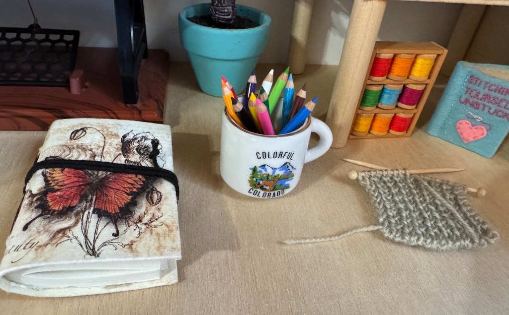 Beside sewing/quilting, Tierney found miniature versions of the other crafts for that she enjoys like drawing/coloring and knitting.