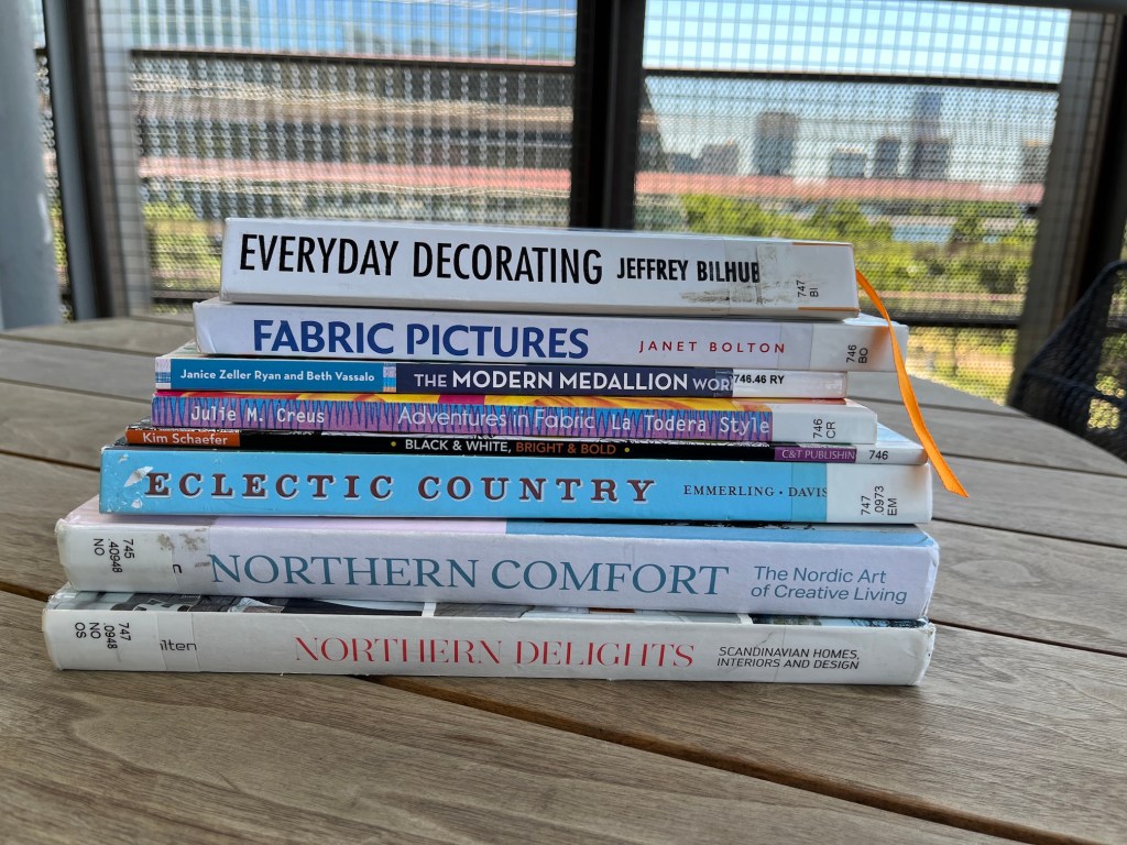 A couple of the books were books I’ve borrowed before such as Quilt Inspirations from Africa and Red & White Quilting. I like to think of my public library as “my other bookcase” and many of the older quilting/crafting books are always on the shelves whenever I want to read them again.