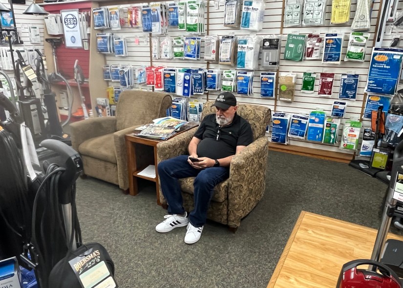 John sat in “the husband area” (ha!) with the vacuums (they sell sewing and vacuum related items) while I browsed.