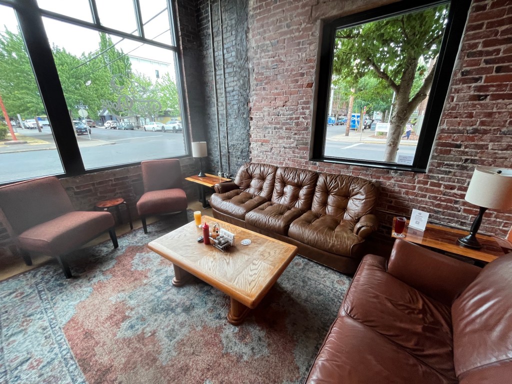We loved that they had a cozy sitting area, actually like a living room, that you could relax in with your beer and your food and watch TV: