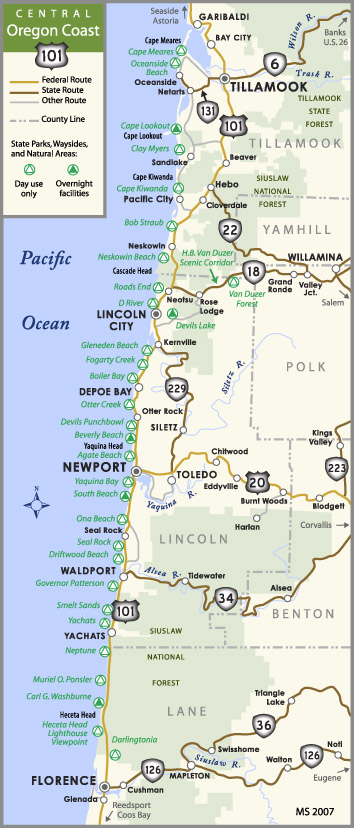 Central Oregon Coast map from aaroads.com/guides/us-101-or/