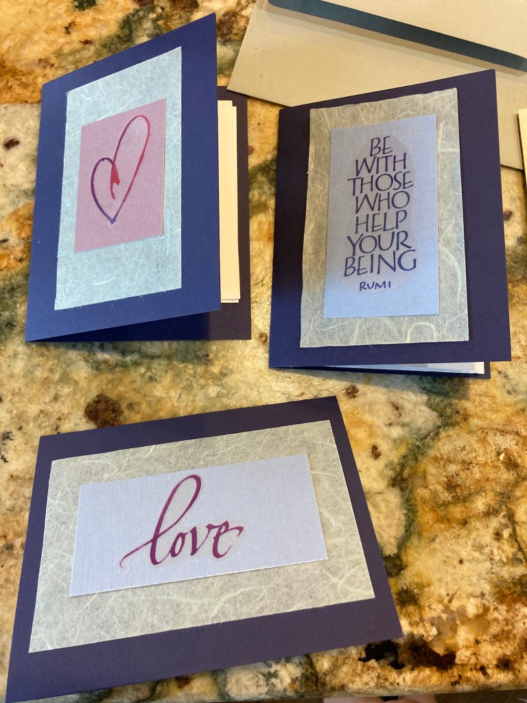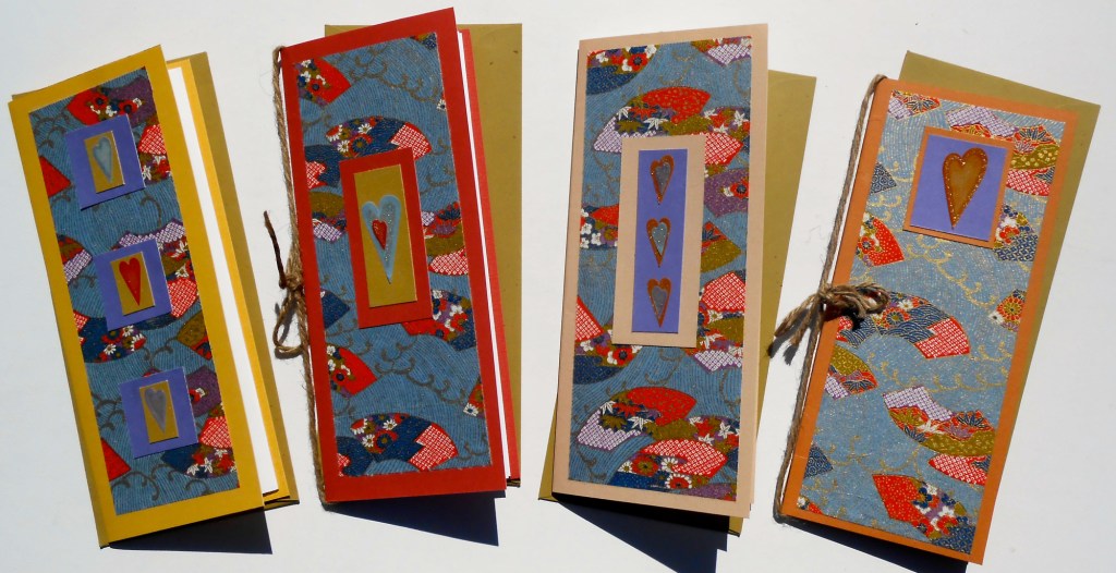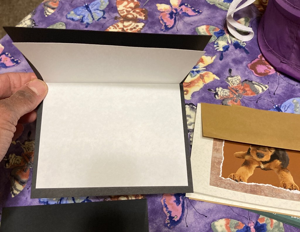 Most of cards we added an inner liner of folded white paper glued into the crease to make it easy to write a note inside the card.