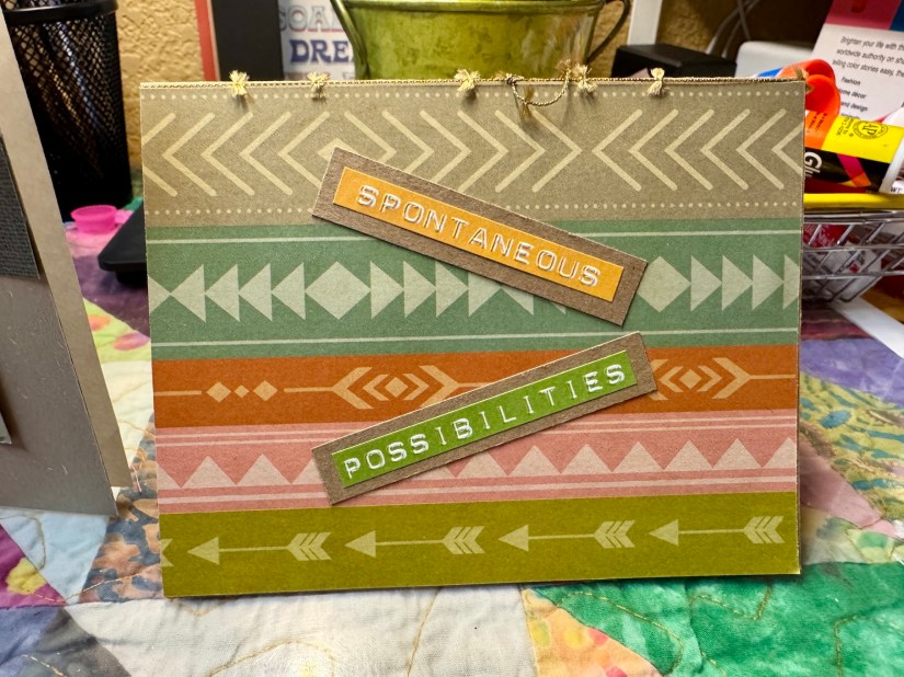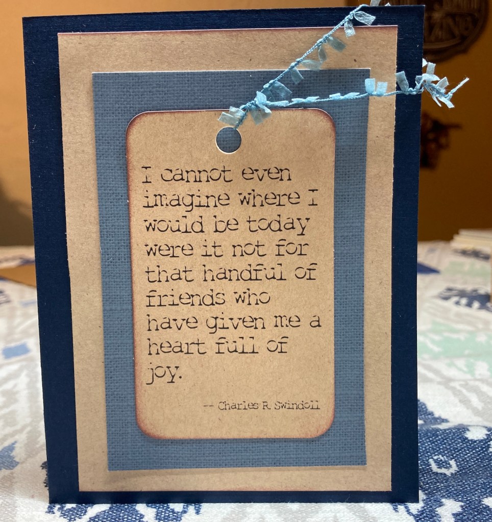 I had some precut card stock which came in handy and saved time. I also used a sticker book with inspirational sayings which I put on the front of each card.