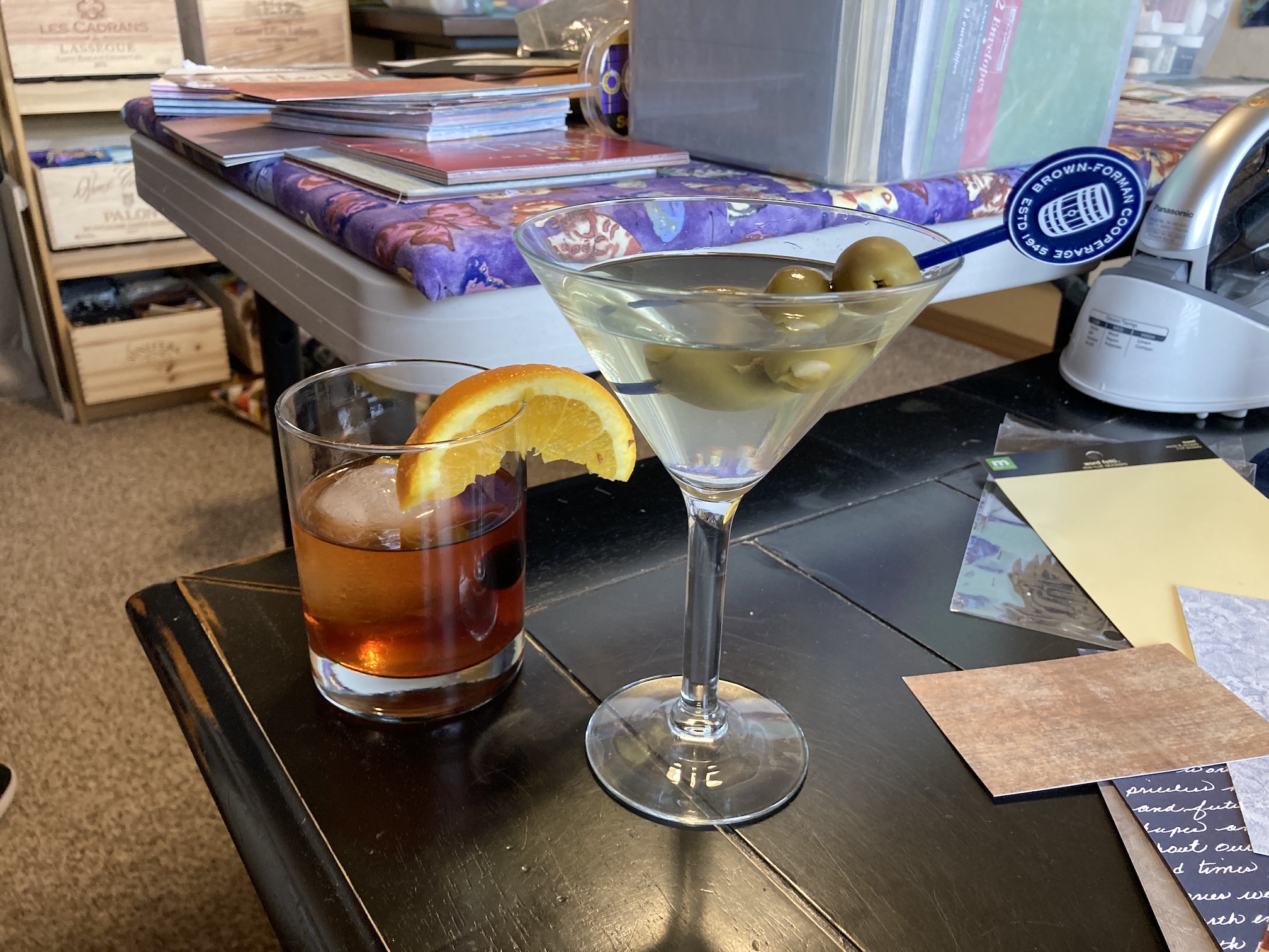 At the end of our card making day we headed out to meet up with her husband for dinner at a favorite Italian restaurant but not before my partner John made us some pre-dinner cocktails to celebrate all our productive day of card making!