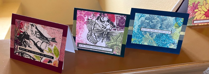 I also made these cards (some of the cards have 2 images – one with the ribbon in place and one with it moved so you can read the text):