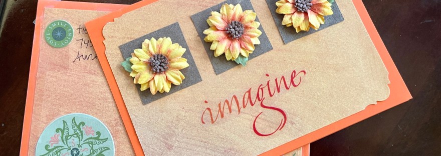 (In case you are wondering, I got those little sunflowers from Hobby Lobby last year. The other supplies were in my stash and who knows where I got them as they are at least 5 – 15+ years old!)