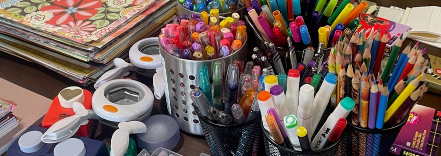 A couple weeks ago I decided to organize my paper-crafting supply stash. Before I started quilting, I started card making with a group at my job in the breakroom at lunch time (I guess paper-crafting is a “gateway drug” to quilting, ha!).
