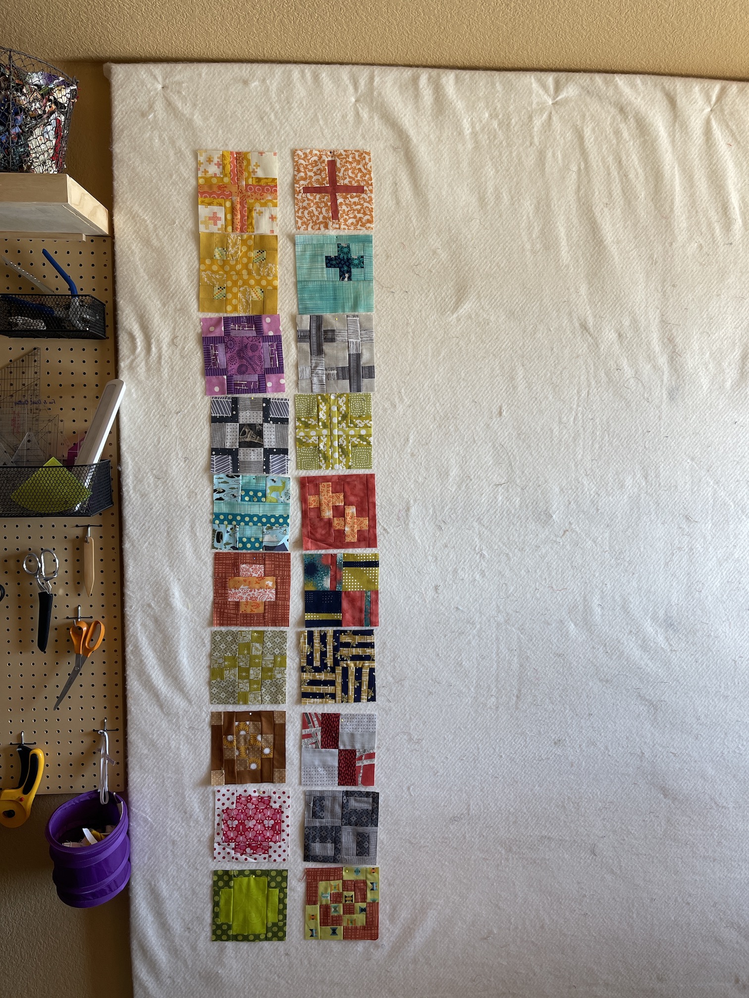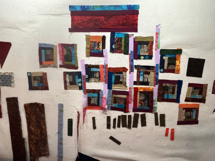 What did I work on? I started a new freeform scrappy log cabin but I didn’t like the direction it was going; and after a couple days working on it I recycled it into the scrap pile (and didn’t take any photos of it).