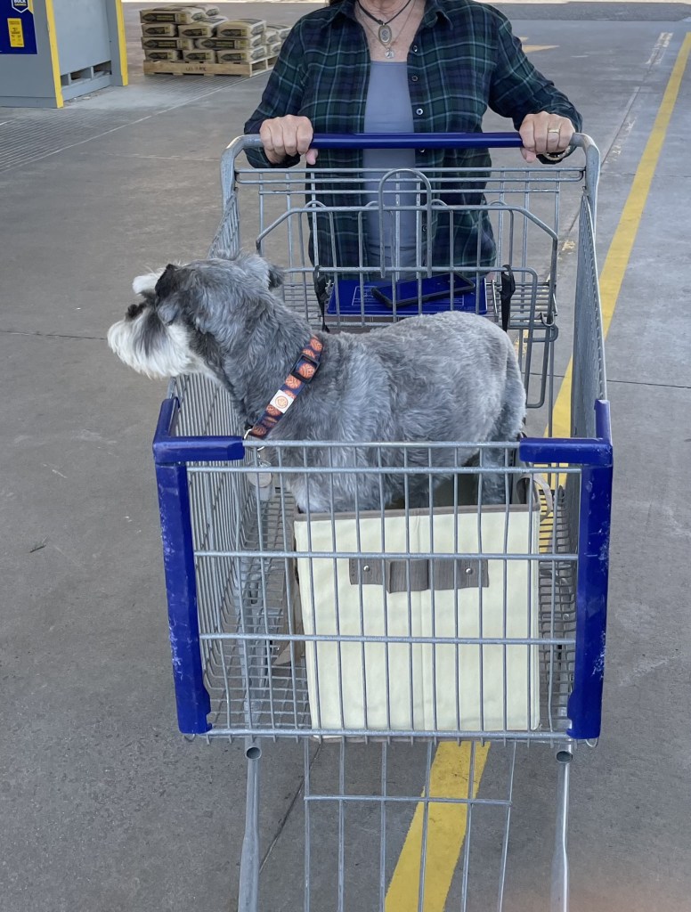 MJ also ran errands to the home improvement store with John and Mike, and she got trained on how to push Mike around in his box in the shopping cart as John does!