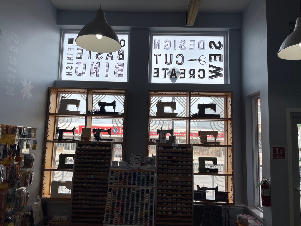 John sat in “the husband area” (ha!) with the vacuums (they sell sewing and vacuum related items) while I browsed.
