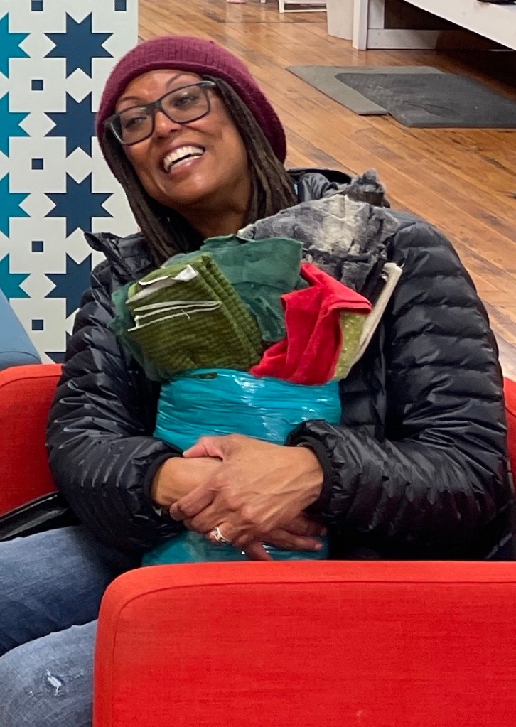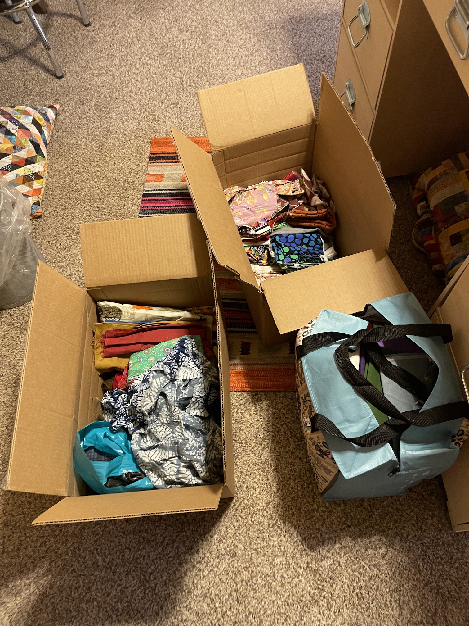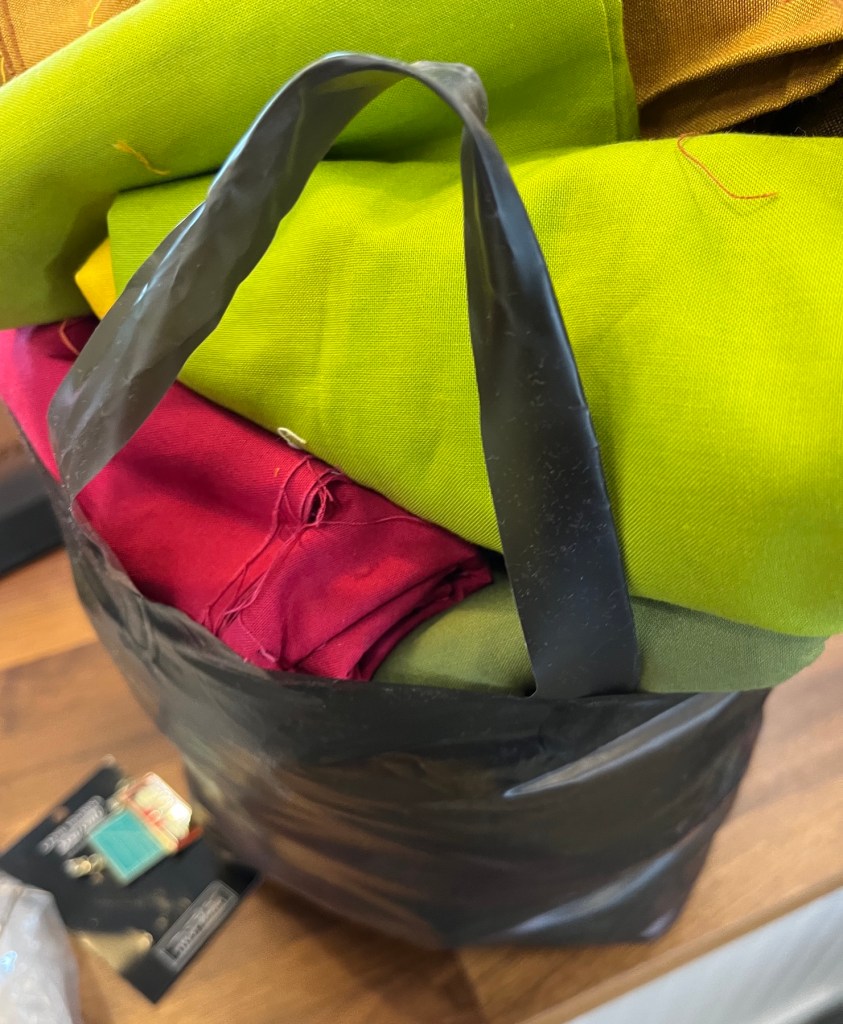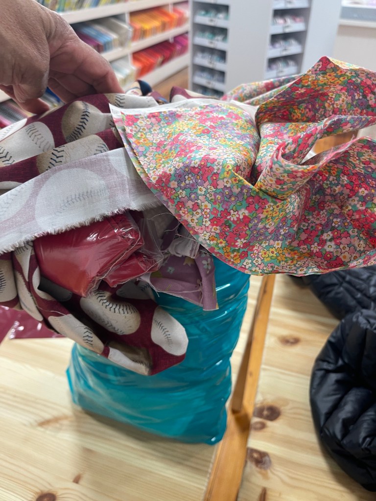 So I ended up filling two bags. Very full. They even let me have fabric overflowing the bag. (I am pretty sure they were happy to get rid of the scraps).