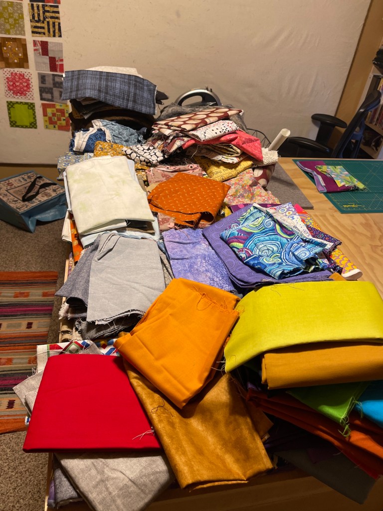 I don’t seem to be able to control my attraction to fabric scraps – various little bits of tasty fabrics. I’ve culled/curated my collection over the years and have donated the scraps I’ll never use to the charity thrift shops to sale in bundles.