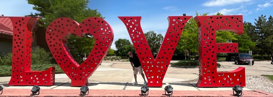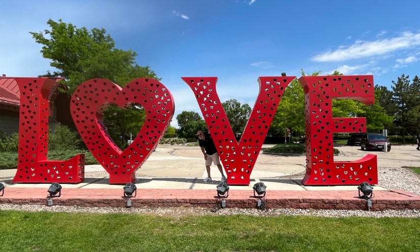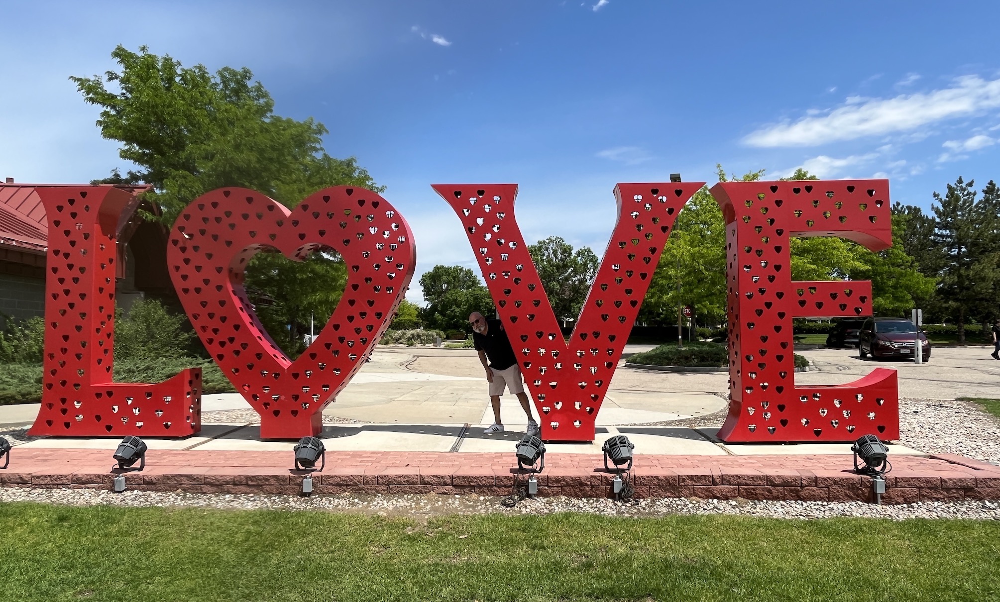 After visiting with John’s sister and her husband we stopped at the Loveland Visitor Center to get John a sticker (he collects stickers to put on his toolbox) and took some photos of the awesome “Love” sign outside the visitor center: