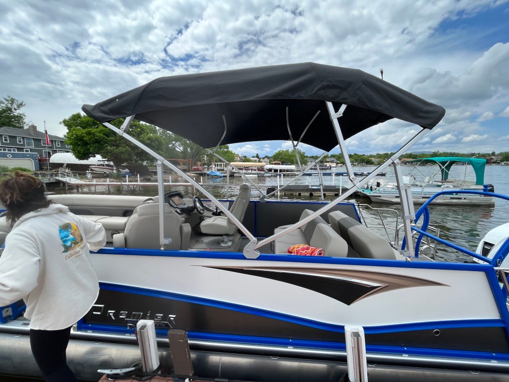 We had a lovely boat ride around the reservoir/lake area they live in (Colorado is far from the ocean but we do have rivers, reservoirs and lakes to sail on). Their adorable little dog Lacey came on the boat ride with us and had her own little bed on the boat: