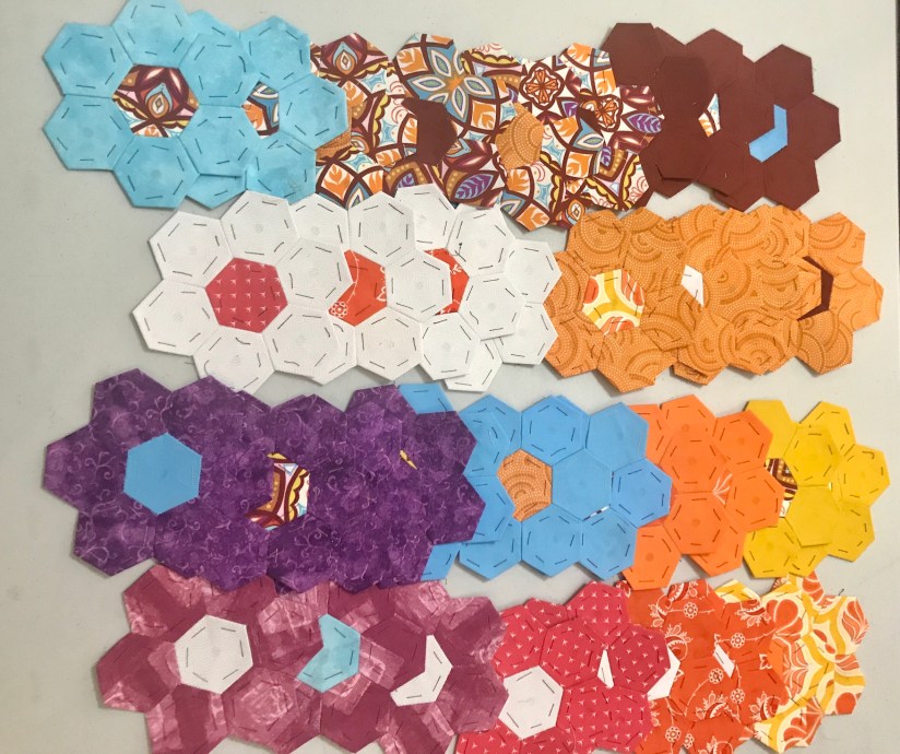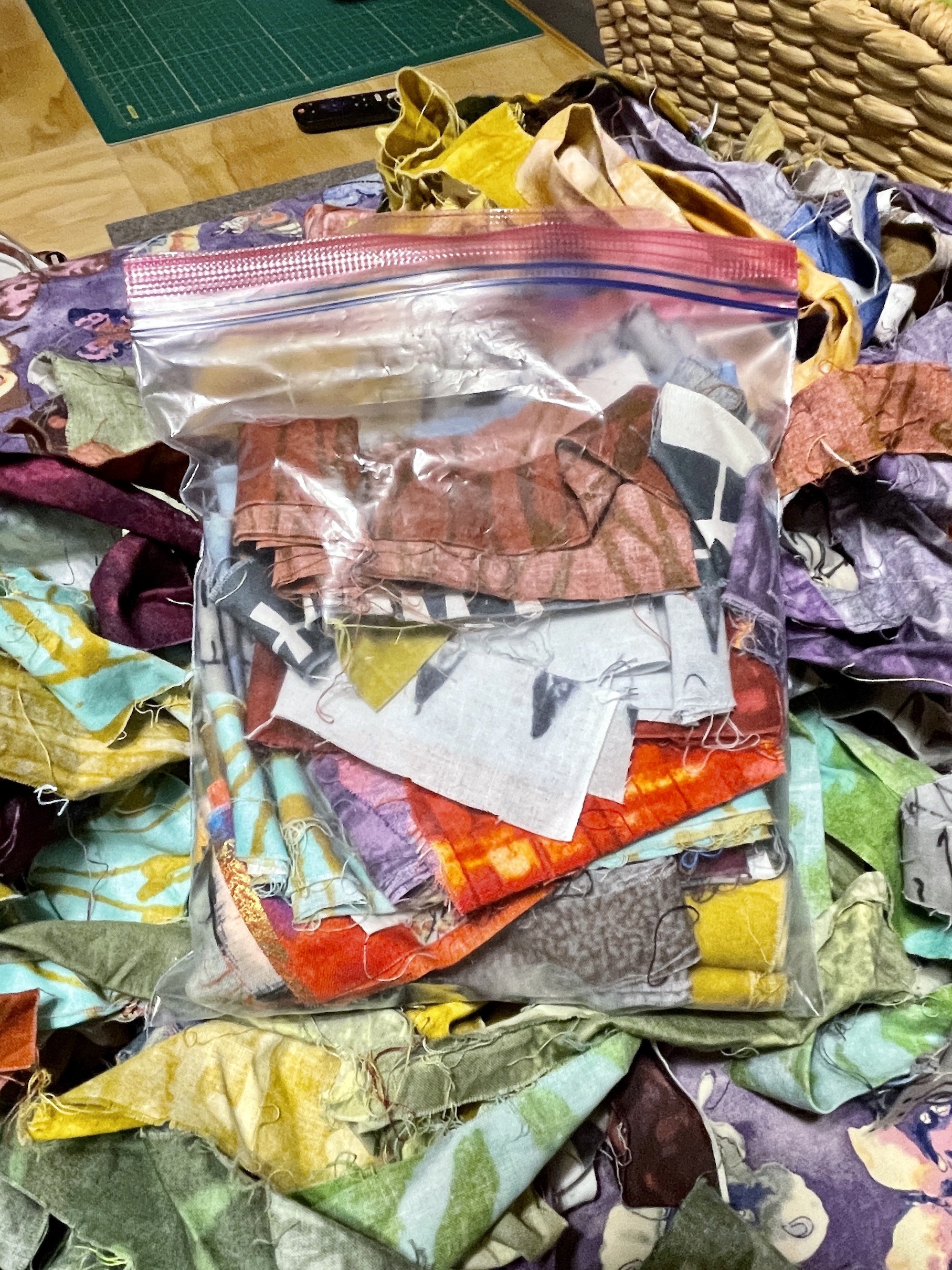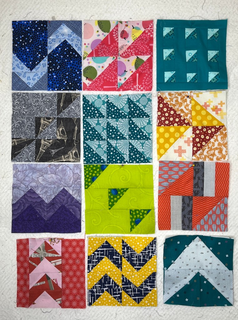 As there is so much piecing of small pieces to make each block, I stitched the entire edge of the quilt with a 1/8 inch seam to prevent unraveling during travel: