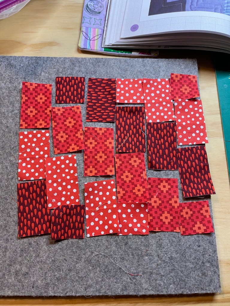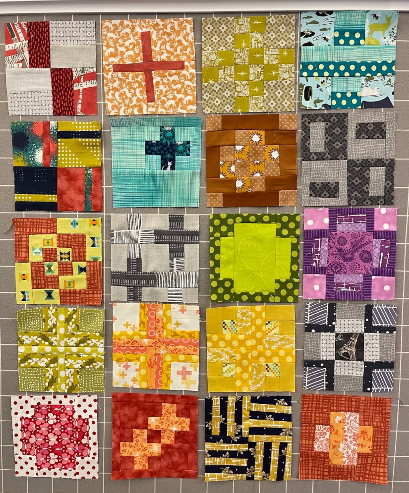 I had looked at those blocks on my design wall so much my eyes were crossing, so I asked my partner John to come out with an initial design/layout. He likes symmetry and order and he created an initial layout and then I refined it a little.