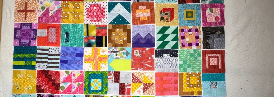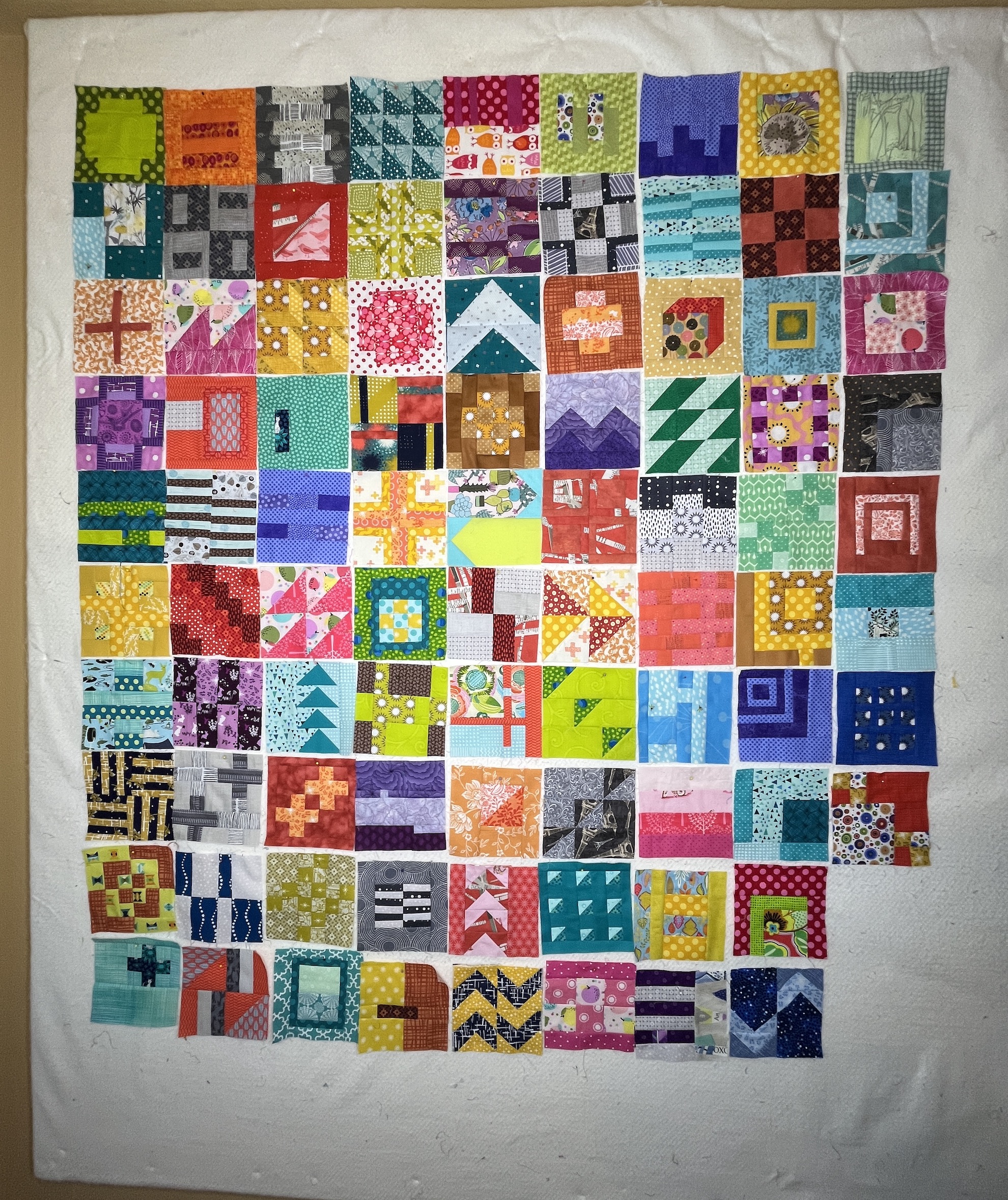 This is a follow up to the post – And then there were 100 (yay)! – I’ve sewing together all 100 blocks for the Tula Pink’s City Sampler 100 Modern Quilt Blocks quilt: