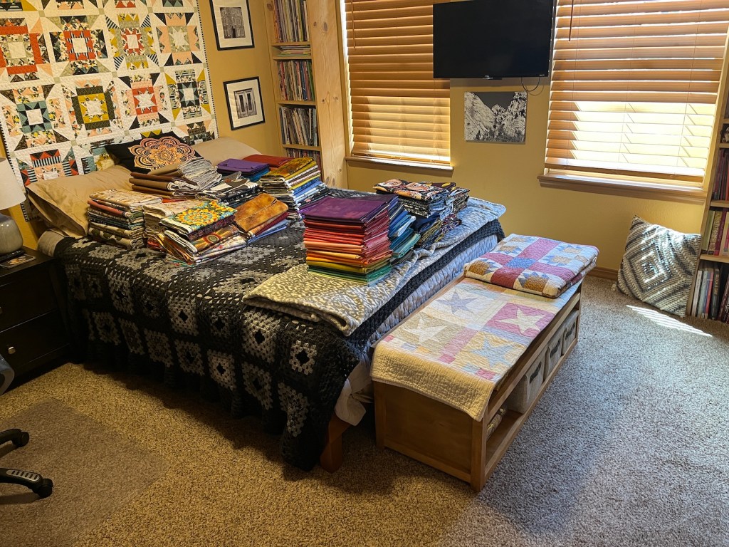 The non sewing supplies got moved to the closet in the upstairs guest room which had previous housed my clothes, which are now moved into the walk in closet off the primary bedroom.