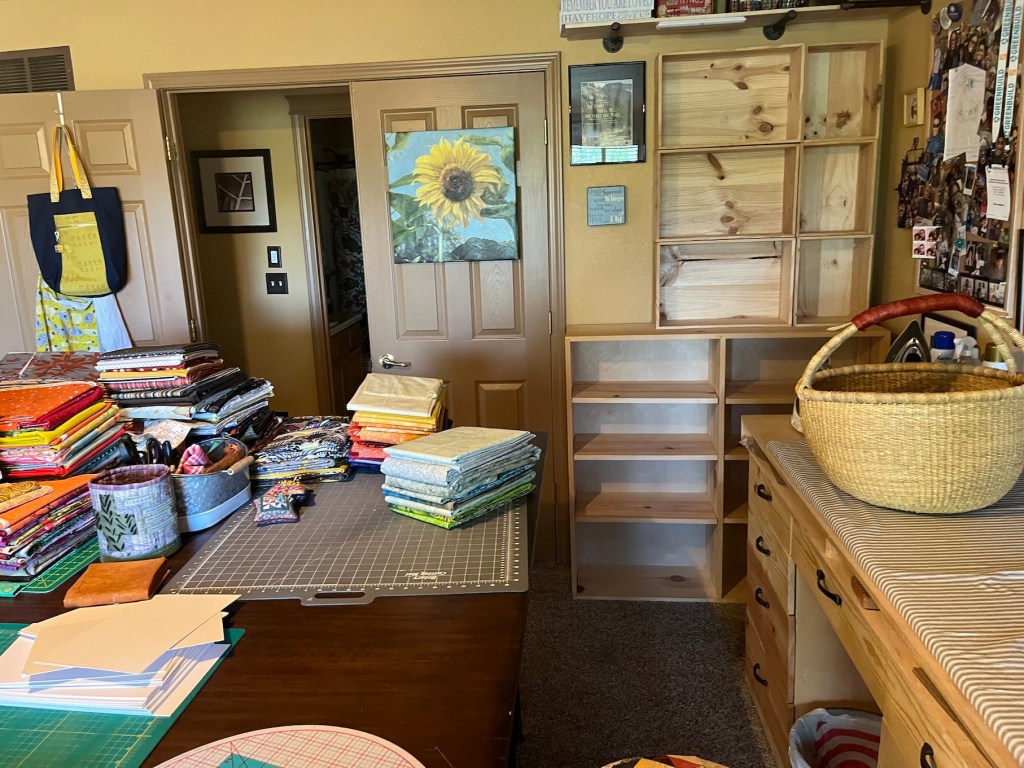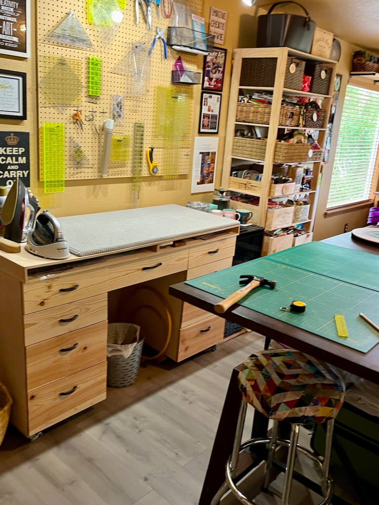 I’ve always had a small space to sew and craft until I met John and then a couple years ago we turned our primary bedroom (which is fairly large) into my studio.