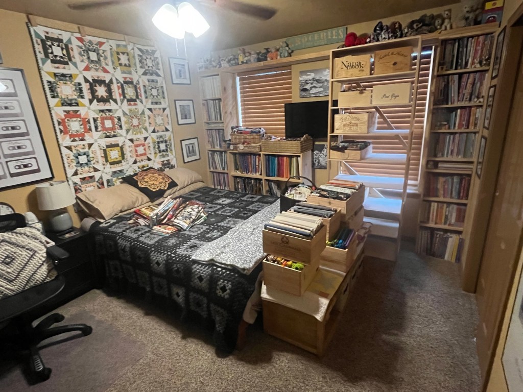 It took a couple days after we switched rooms to settle into my new room, which is less than half the size of the space I had in the primary bedroom, and here is what it looks like now: