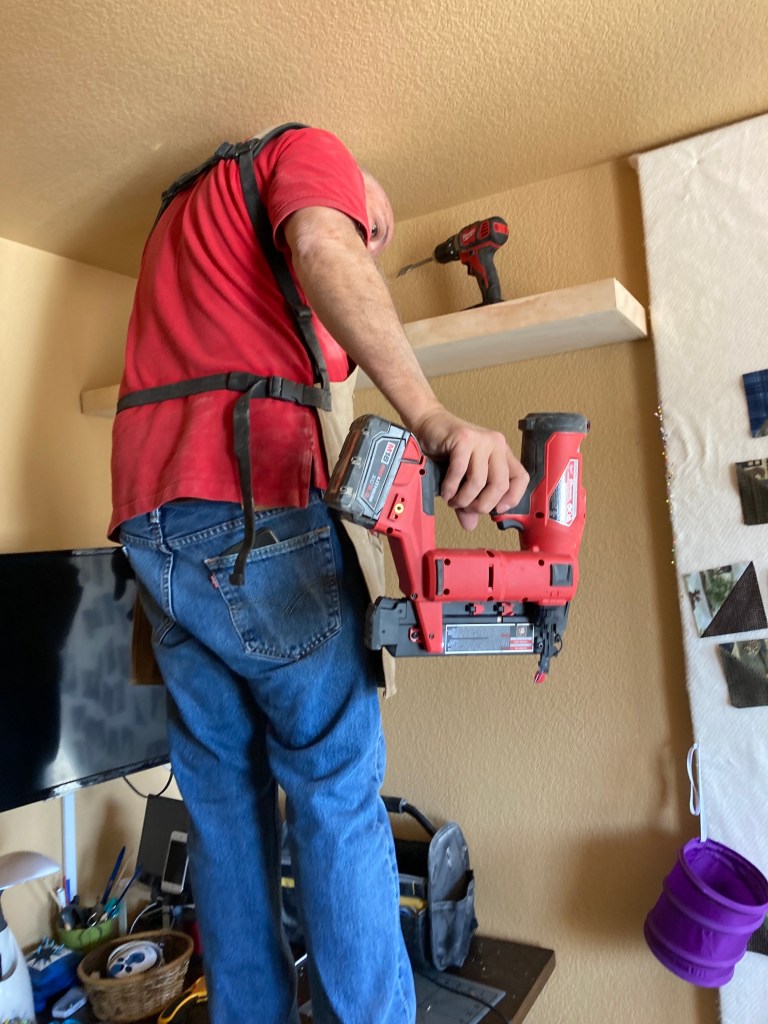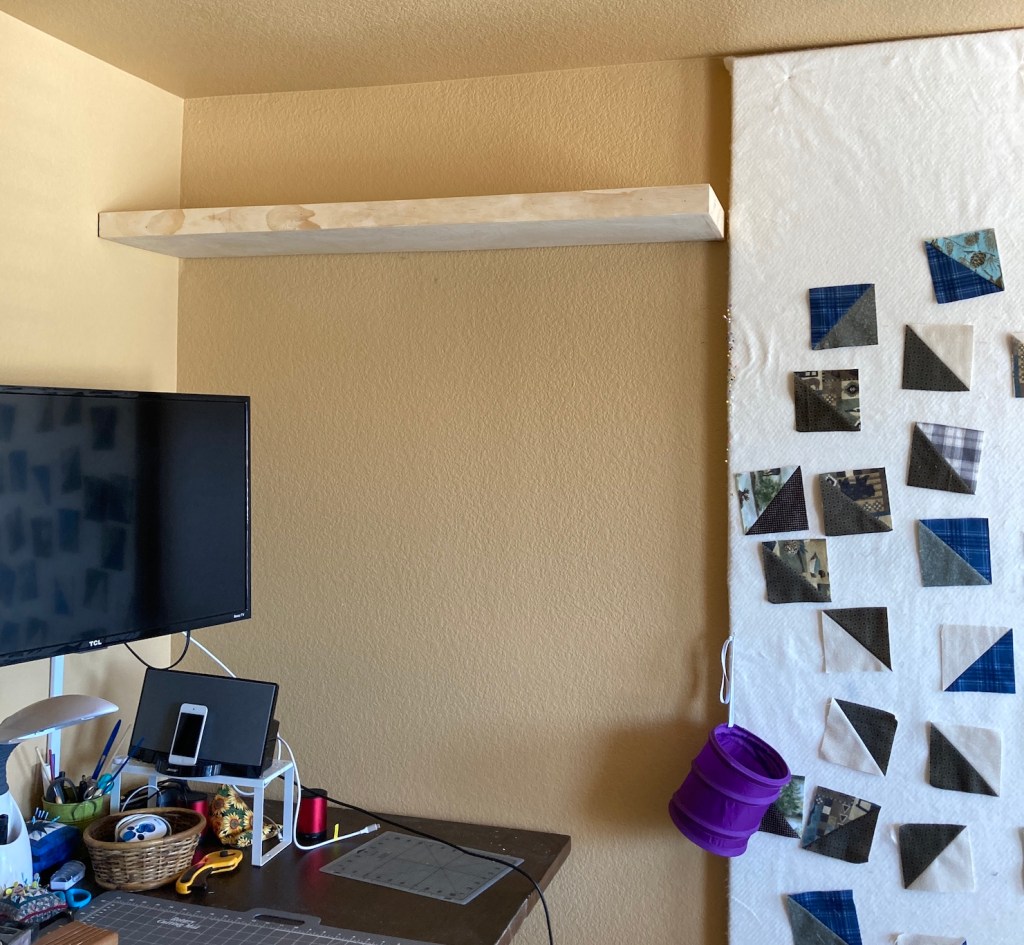 My studio is located in the former Primary Bedroom of the house. A couple years ago my husband John and I decided we didn’t need that much room for our main bedroom and moved to a smaller bedroom. Originally it was a carpeted room but in summer 2024 John put in a floor.