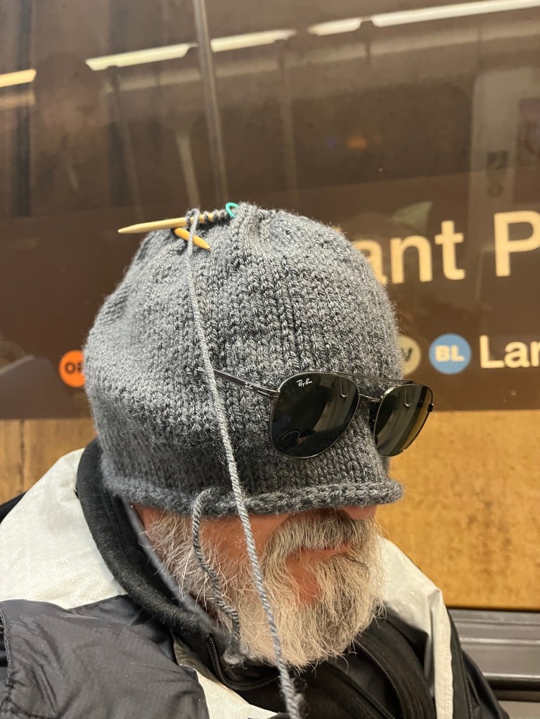While we were stuck in Washington DC (see post A Christmas and a New Years Miracle? (Part II)) I worked on this hat and at one point I wanted to make sure it was long enough before I began the process of decreasing my stitches to the crown/top of hat to complete it.