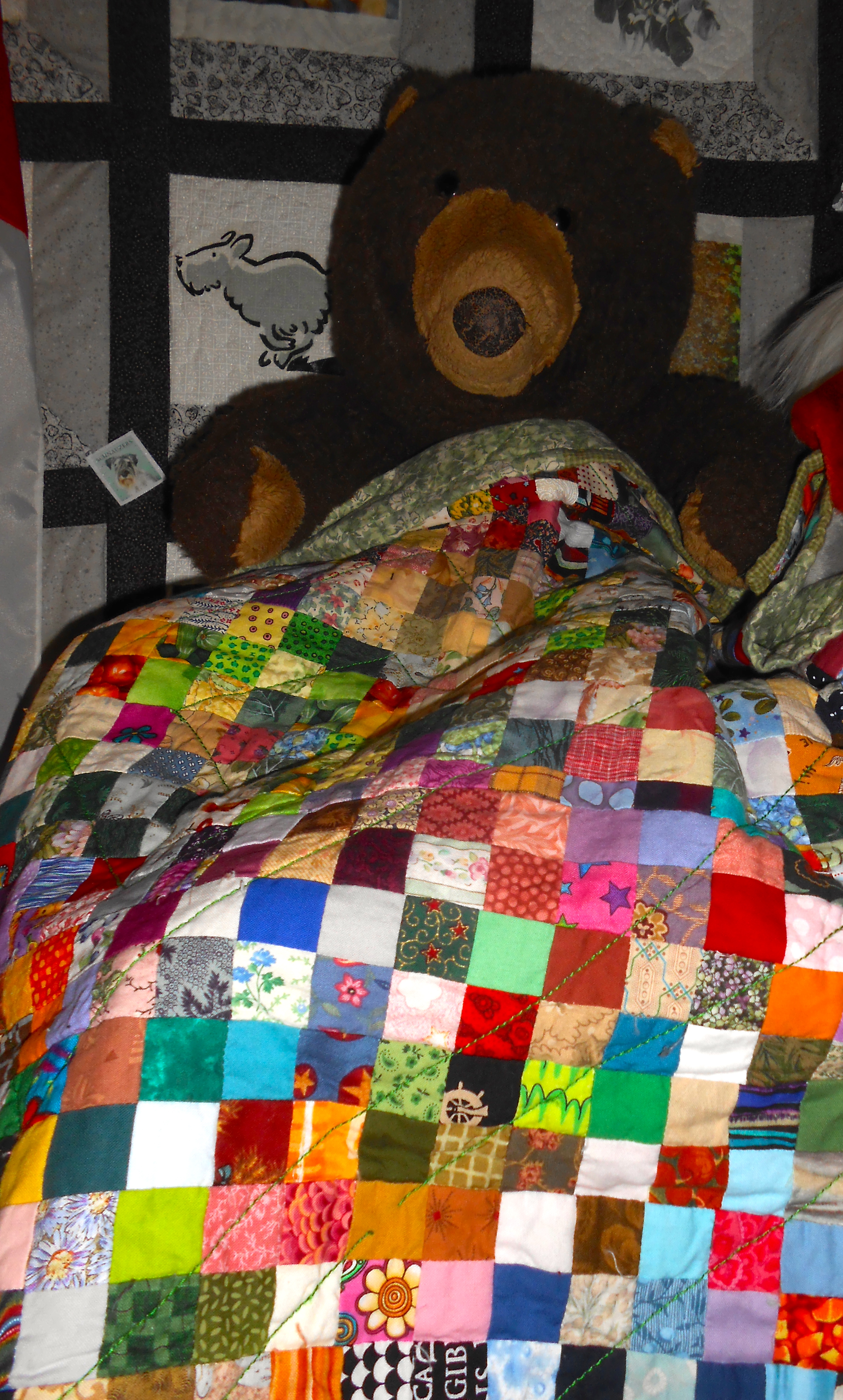 I am really enjoying this audiobook. Of course now you all expect that I will quickly complete the bindings on the stack-o-quilts as I should feel pretty fearless about them now…