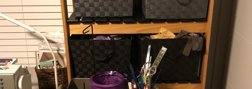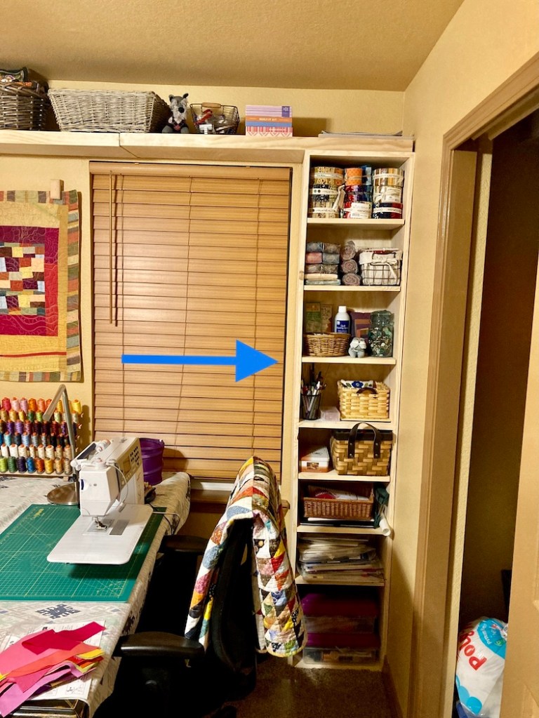 The non sewing supplies got moved to the closet in the upstairs guest room which had previous housed my clothes, which are now moved into the walk in closet off the primary bedroom.