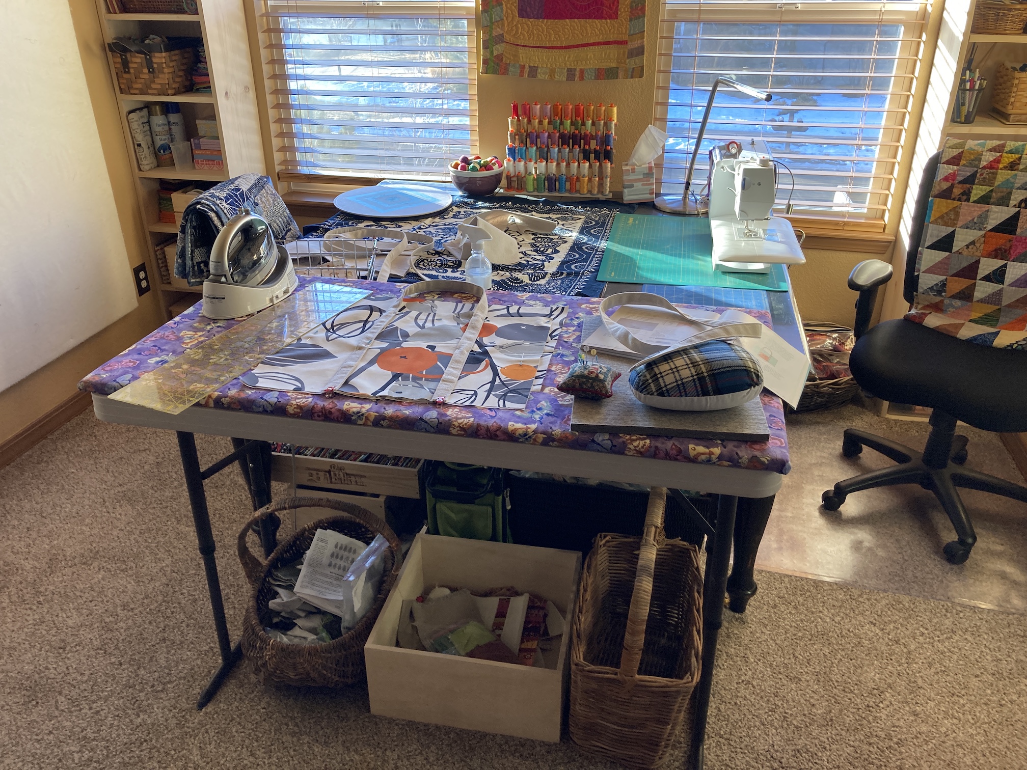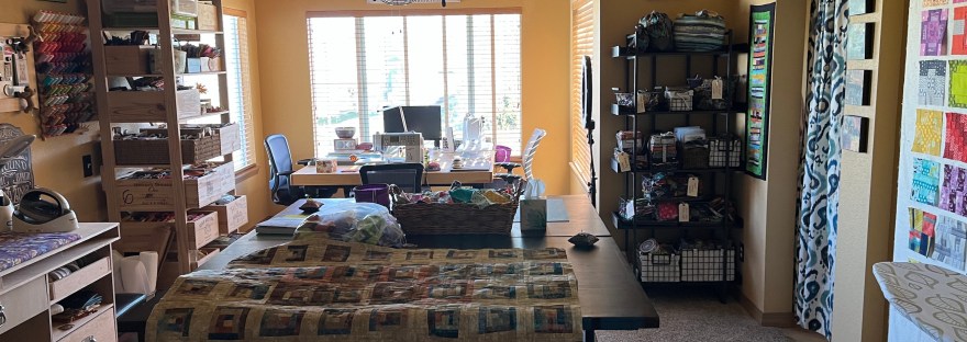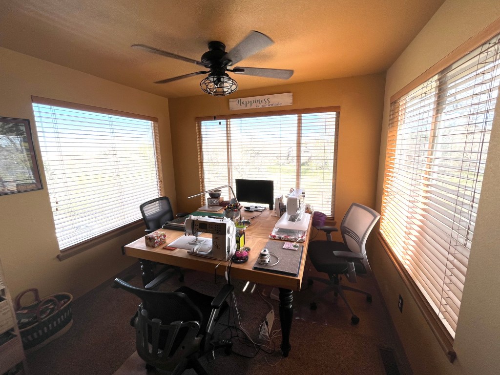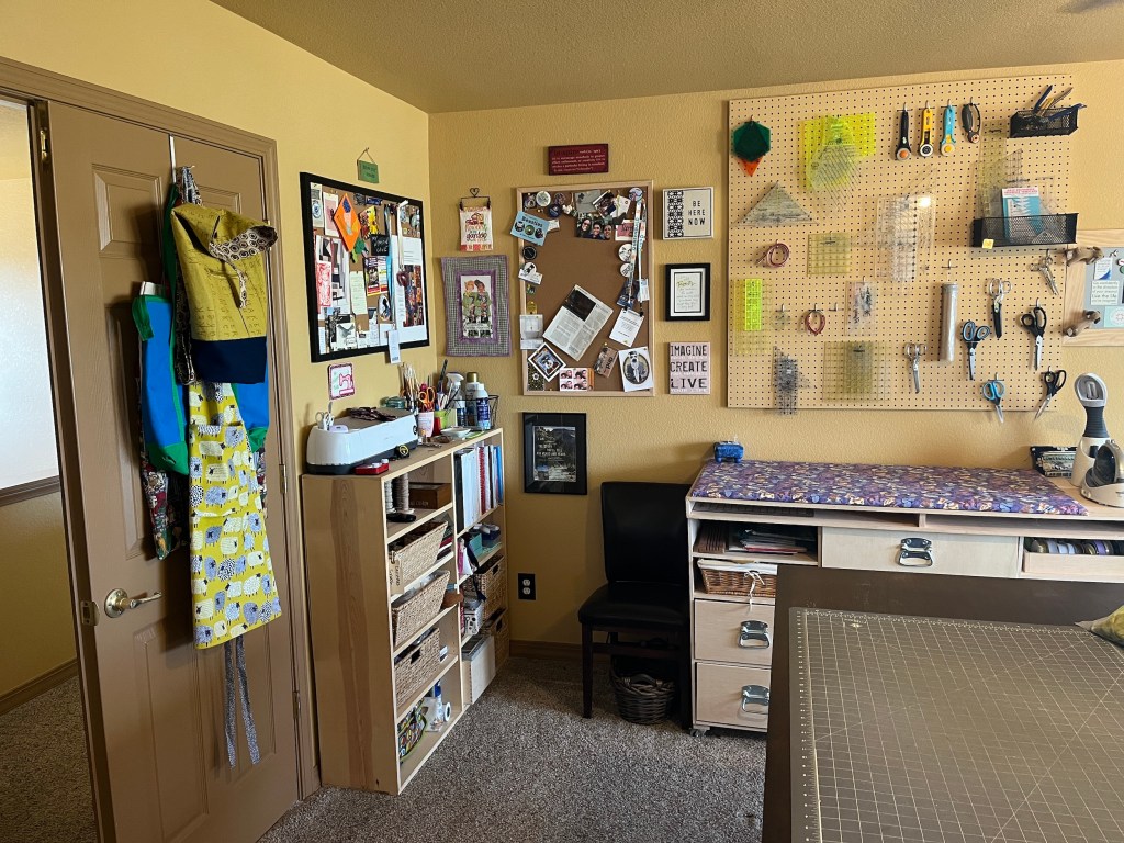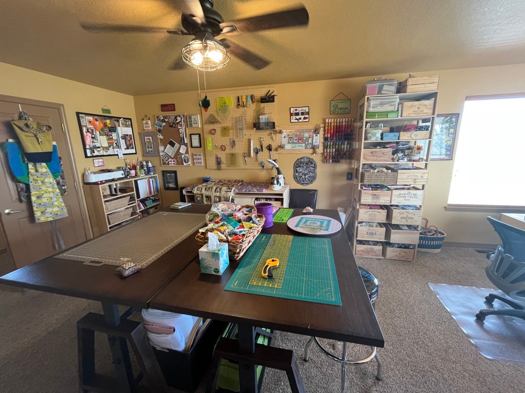 I’ve always had a small space to sew and craft until I met John and then a couple years ago we turned our primary bedroom (which is fairly large) into my studio.