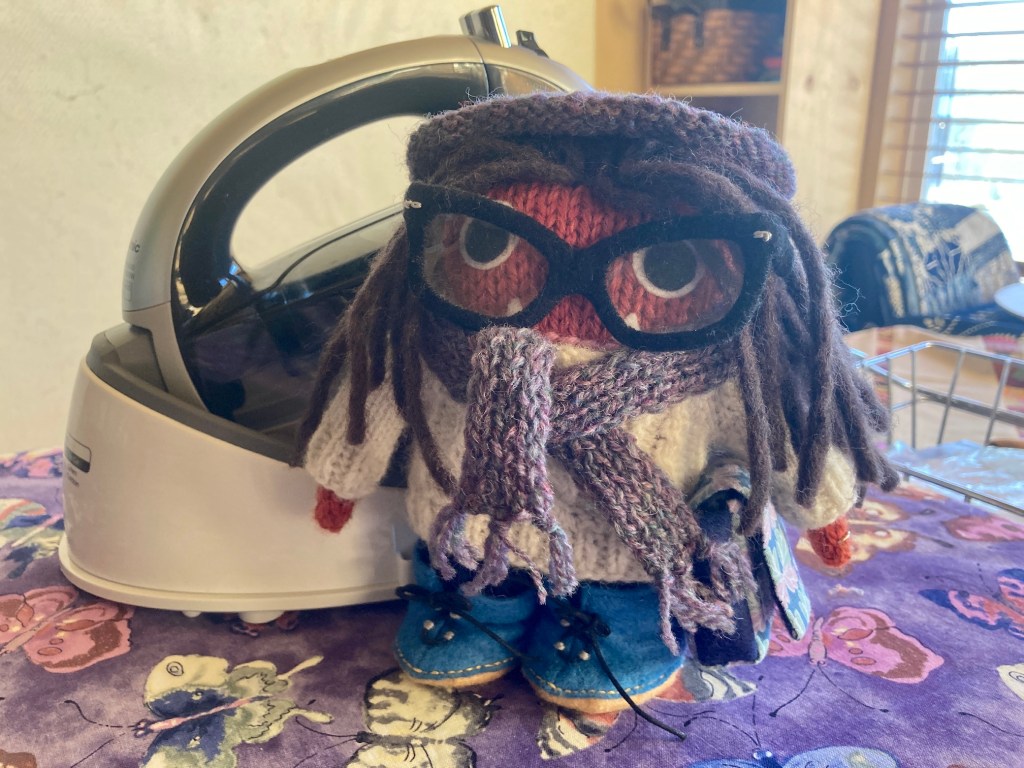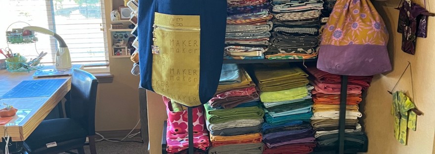 However In my small crafting spaces I created entire bodies of work such as those I exhibited in my solo show (see 2019 post Solo Show Seattle Municipal Tower, Part III) The Wardrobe Meets the Wall. (And no new body of work has occurred in my large studio!)