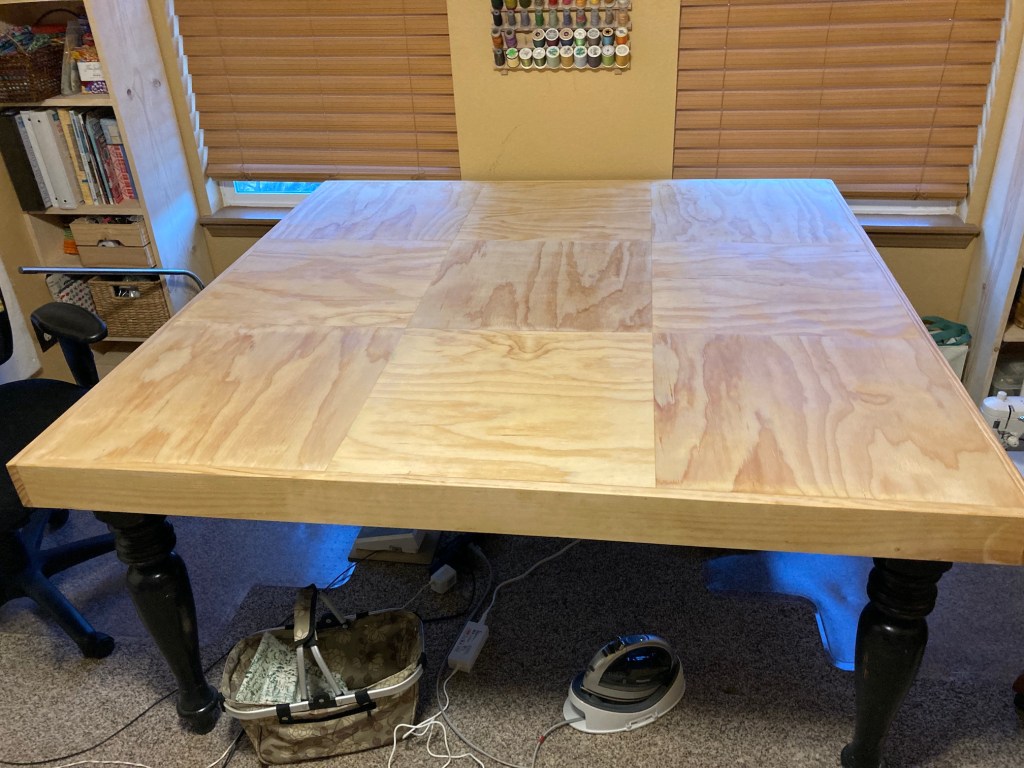 My studio is located in the former Primary Bedroom of the house. A couple years ago my husband John and I decided we didn’t need that much room for our main bedroom and moved to a smaller bedroom. Originally it was a carpeted room but in summer 2024 John put in a floor.