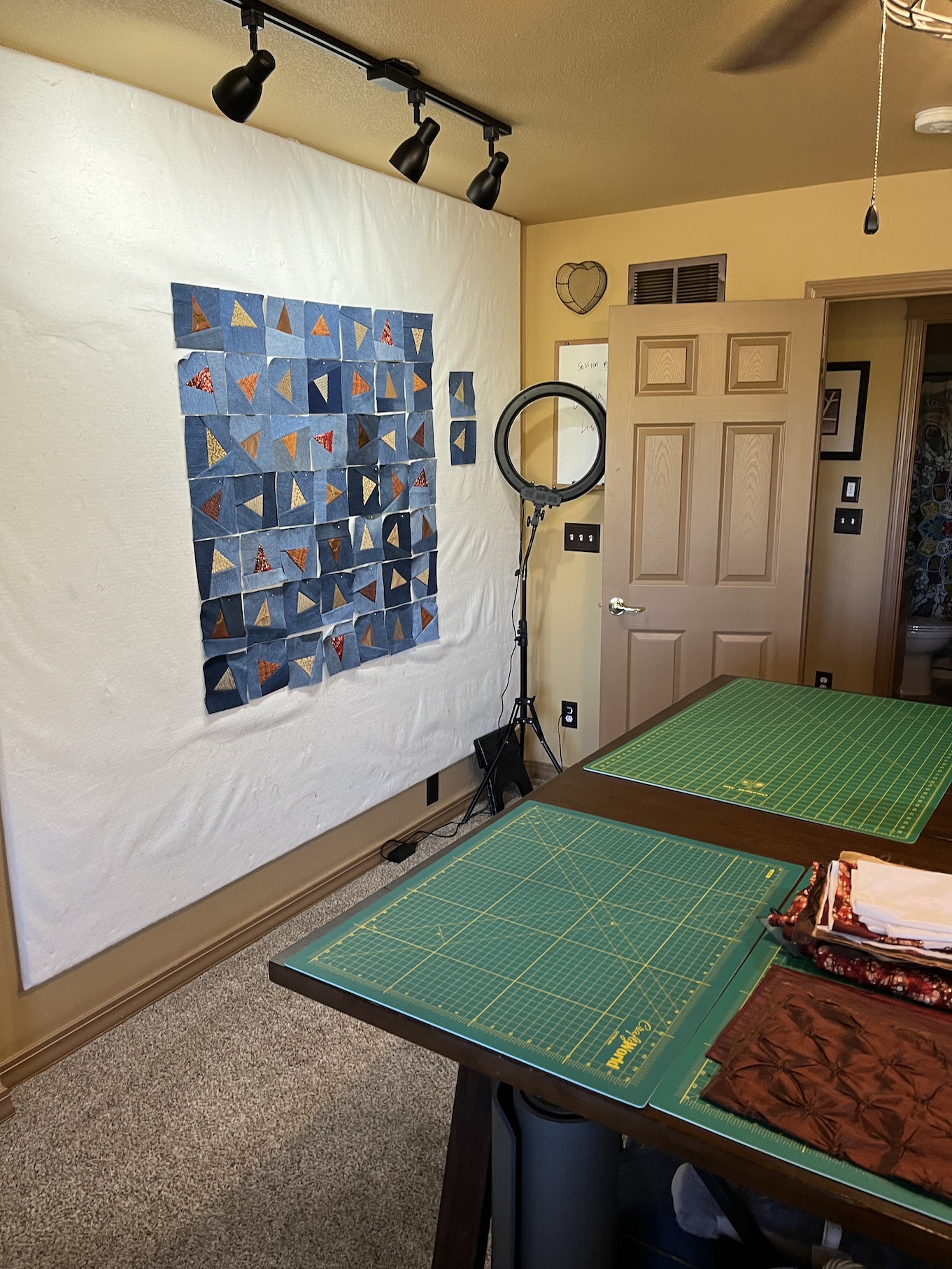 I made that entire The Wardrobe Meets the Wall collection of 12+ quilts in a tiny little back bedroom of my house in Oregon where I had to use part of my hallway as my design wall.