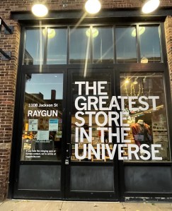 Fun shops we visited in Old Market included the Christmas store Tannenbaum(which had the most unusual and perhaps disturbing Nativity Scene I’ve ever seen); Raygun(which had a hysterical sign on the front window); the Imaginarium ;as well as the Monster Grub Pub (a horror themed pub!):