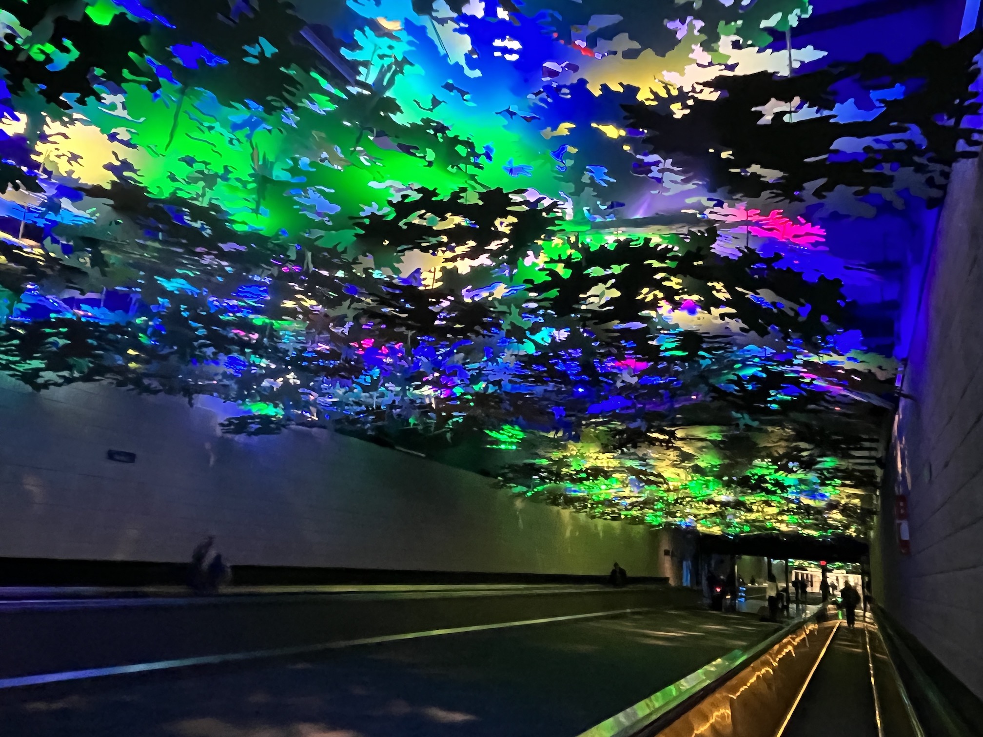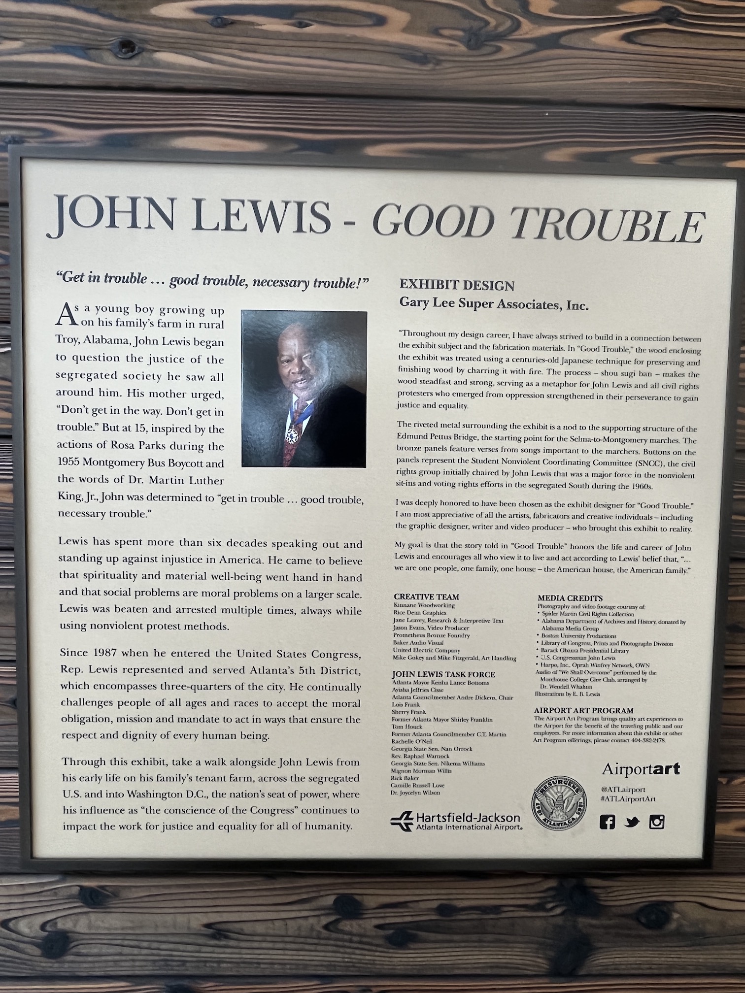 I probably should have written a post about our visit to Atlanta, Georgia in November 2022 as I took a lot of cool photos, but I’ll share some of them here. The airport, Hartsfield-Jackson Atlanta International Airport, is really cool and we loved the art to include a simulated rainforest at night experience in one of the main moving walkway areas; and a wonderful tribute to the late U.S. Representative John Lewis: