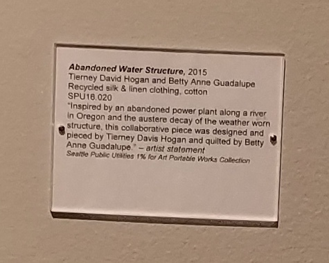 My art quilt Abandoned Water Structure is showing 04/05 – 07/03/17 at the Seattle Municipal Tower Gallery, Seattle, WA, as part of the Your Body of Water, Part II exhibit by the City of Seattle’s Office of Arts & Culture.