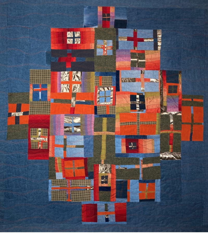 In 2012 a group of art quilters came together and created the Quilting Meets Couture Collection which was exhibited in several venues to including as a featured exhibit at the 2013 Sisters Outdoor Quilt Show. This collection of 21 art quilts were created from silk, wool and linens samples and remnants from couture fabrics from the European textile houses of Ratti, Braghenti, Castellini and D’Este. The fabrics in these quilts are from the NYC Fashion District in 1990s, where Claire Spector was gifted by staff of one of the textile houses couture fabric samples and remnants. The Quilting Meets Couture group was comprised of the following 14 women sharing their art and their stories. Below are my four (4) art quilts that were part of this collection.