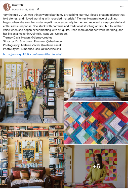 In May 2023 I was invited by the Editor in Chief of Quiltfolk Magazine to be featured in the October 2023 issue (Issue #28) of Quiltfolk Magazine.