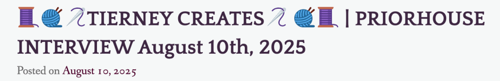 Here is the link to the interview: Tierney Creates Interview